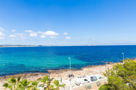 These rooms have a stunning side view of the sea and pool view with private balconies to watch the iconic Ibiza sunset. The 20m2 rooms are finished to a high standard, with king size beds which can be upon request divided into large twin beds. Each sea view room includes a flat screen freeview television, free high speed WiFi, safety deposit box and air conditioning.